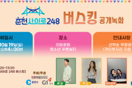 깊어가는 가을, 아름다운 의암호를 배경으로 감미로운 음악을 즐길수 있는 특별한 콘서트가 시민들을 만난다. 춘천시는 G1방송과 함께 19일 오후 3시 의암공원 일원에서 ‘춘천사이로 248 버스킹‘을 개최한다. 이번 버스킹 공연은 ’의암호수 사이에서 추억을 만난다‘는 의미를 담아 지난해 12월 개통한 춘천의 새로운 랜드마크 ’춘천사이로 248‘ 출렁다리를 배경으로 열린다. 시민과 관광객들에게 의암호의 아름다운 관광자원을 소개하고 관광 활성화도 기대된다. 공연 사회는 가수 테이가 맡는다. 그리고 ’화장을 고치고‘를 부른 가수 왁스와 감성듀오 ’옥상달빛‘ 그리고 ’장들레‘도 출연해 음악과 자연이 하나되는 특별한 감동의 무대를 선사한다. 시는 이번 공연을 통해 공지천을 중심으로 의암호 일대 관광자원을 연계하는 ‘The Wave’ 프로젝트를 통해 야간 경관조명 설치, 수변시설 확충, 특화 문화축제 개최 등 문화, 예술, 힐링의 공간을 지속적으로 발전시켜 나갈 계획이다. 시 관계자는 “일상에 지친 시민과 관광객들에게 음악이 주는 즐거움과 위안을 선사하고 춘천이라는 도시가 주는 아름다운 감수성을 그대로 전달하는 소중한 기회가 되길 바란다”고 했다.