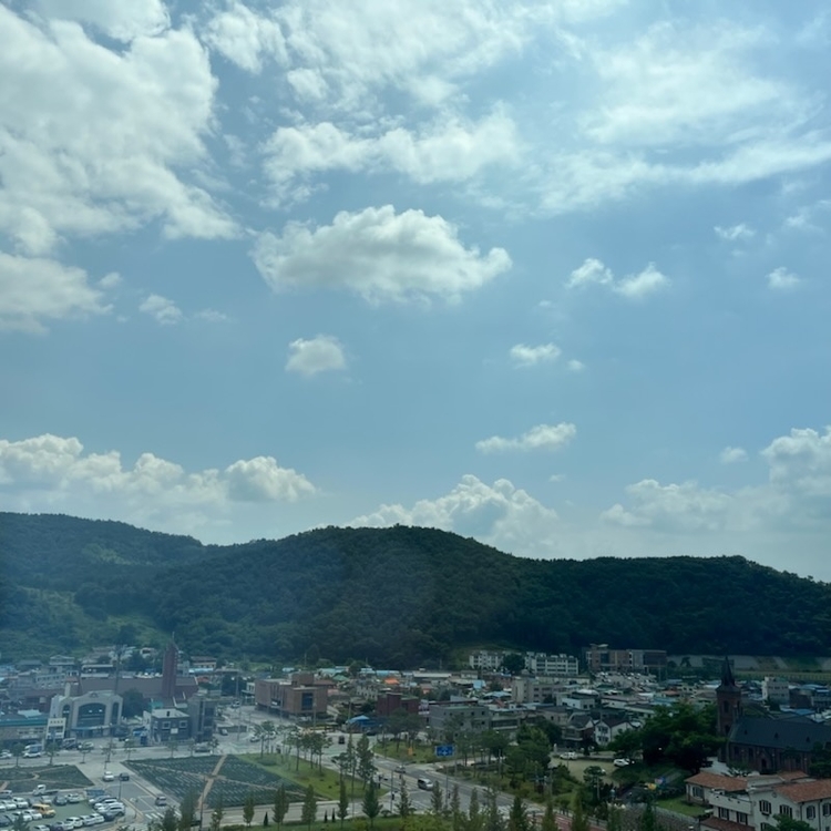 2) 평소 푸르름에 대한 그리움을 지녀오던 터에 모처럼 자연경관을 만끽하려고 일부러 예산역에서 군청까지 40분 정도를 걸어서 갔다. 가슴이 뻥 뚫리고 등에서 흐르는 땀방울조차 감사함이 느껴졌다. 도로 옆에 사는 한 할머니는 밭에서 호박을 한 바구니 따서 집으로 들어갔다. 군청 앞마당에는 잠자리들이 날아다녔다. 재난상황실이 있는 8층에서 내다 본 푸른 산을 보고 이곳에 근무하는 공무원들이 부러웠다.