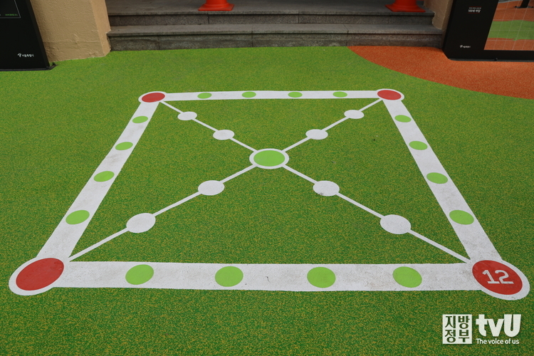 또 어르신들이 직접 제작한 작품을 전시하는 갤러리와 24절기를 소환할 수 있는 24절기 기억 안내 사인, 인지시계, 윷놀이와 사방치기 등 전통 놀이를 할 수 있는 바닥 그림과 휴게 공간까지 설치되어 있다.