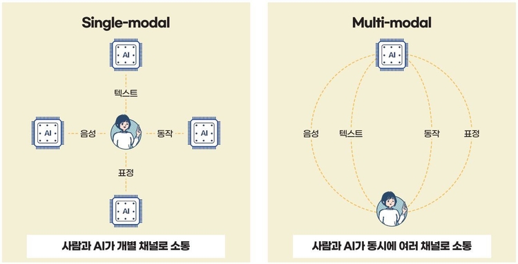 AI 기술의 발달은 처음 텍스트로 하는 대화에서 시작해 현재는 음성으로 대화하는 수준에까지 이르렀고, 더 나아가 사물과 이미지를 구분하고 그림을 그리는 등 무서우리만큼 진화의 속도가 빨라졌다. 이를 ‘멀티모달 AI’라고도 부른다. 지난해 오픈AI가 내놓아 전 세계에 신선한 충격을 안겨준 GPT-4가 대표적이다.