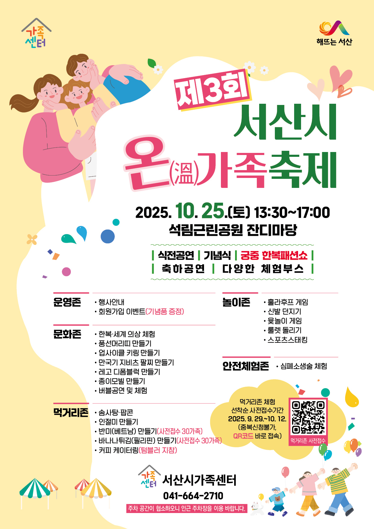 충남 서산시는 오는 10월 25일 석림근린공원 잔디마당 일원에서 제3회 온(溫)가족 축제를 개최한다고 밝혔다.