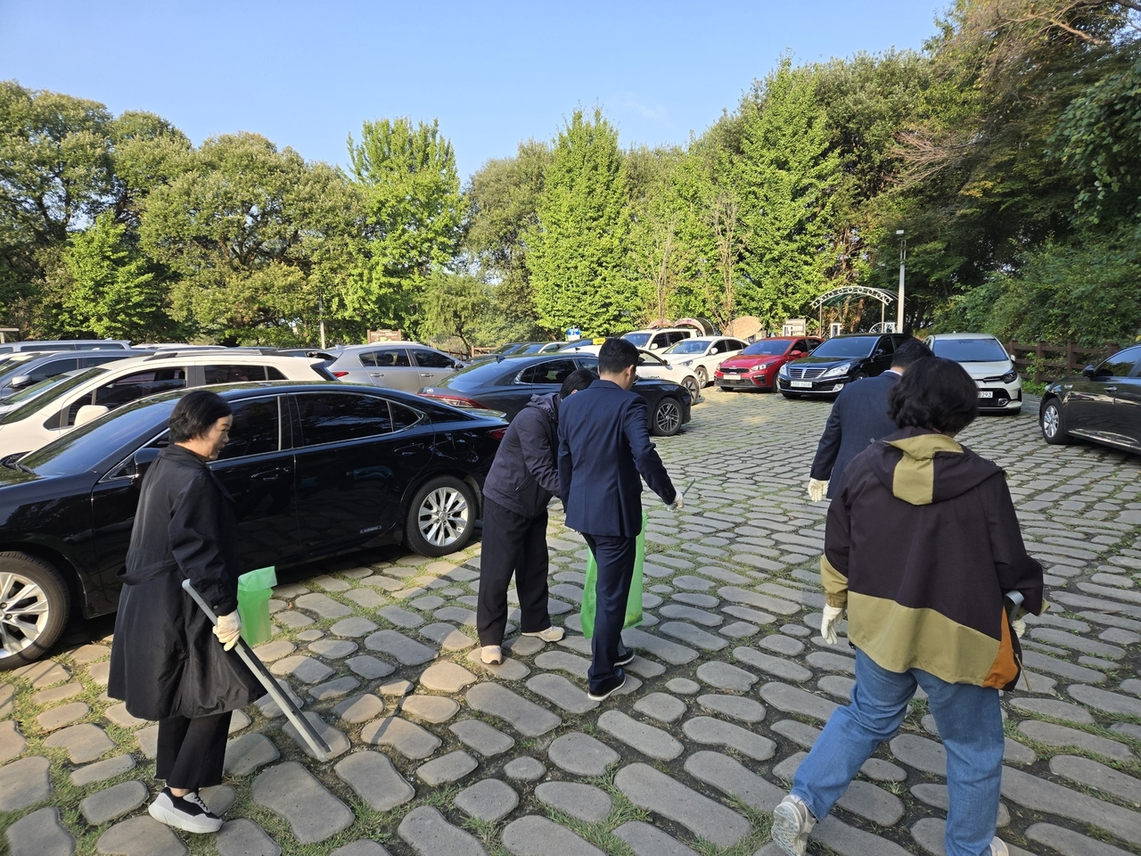 참여자들은 명상정원 일대를 걸으며 쓰레기를 줍는 ‘플로깅(plogging)’ 활동을 펼쳤고, ‘나의 탄소중립 실천 다짐 한마디’를 홍보패널에 작성하며 생활 속 실천 의지를 다졌다.