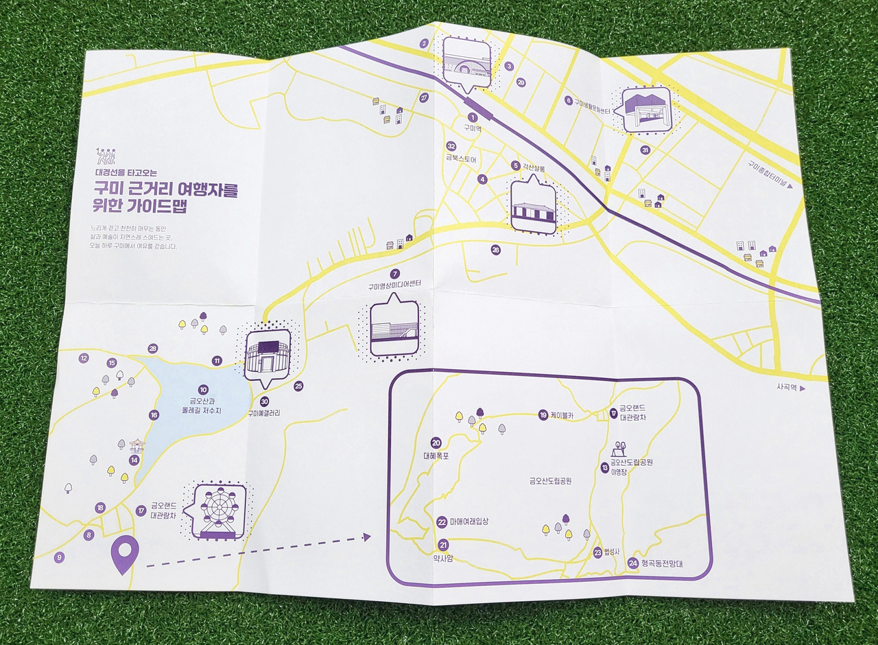 이번 프로젝트는 ‘대경선을 타고 오는 구미 근거리 여행자’를 위한 안내서로, 구미역 인근 지역에 스며 있는 문화의 가치를 되살리고 예술을 통해 구미만의 정체성과 콘텐츠를 만들어가는 취지로 진행됐다.