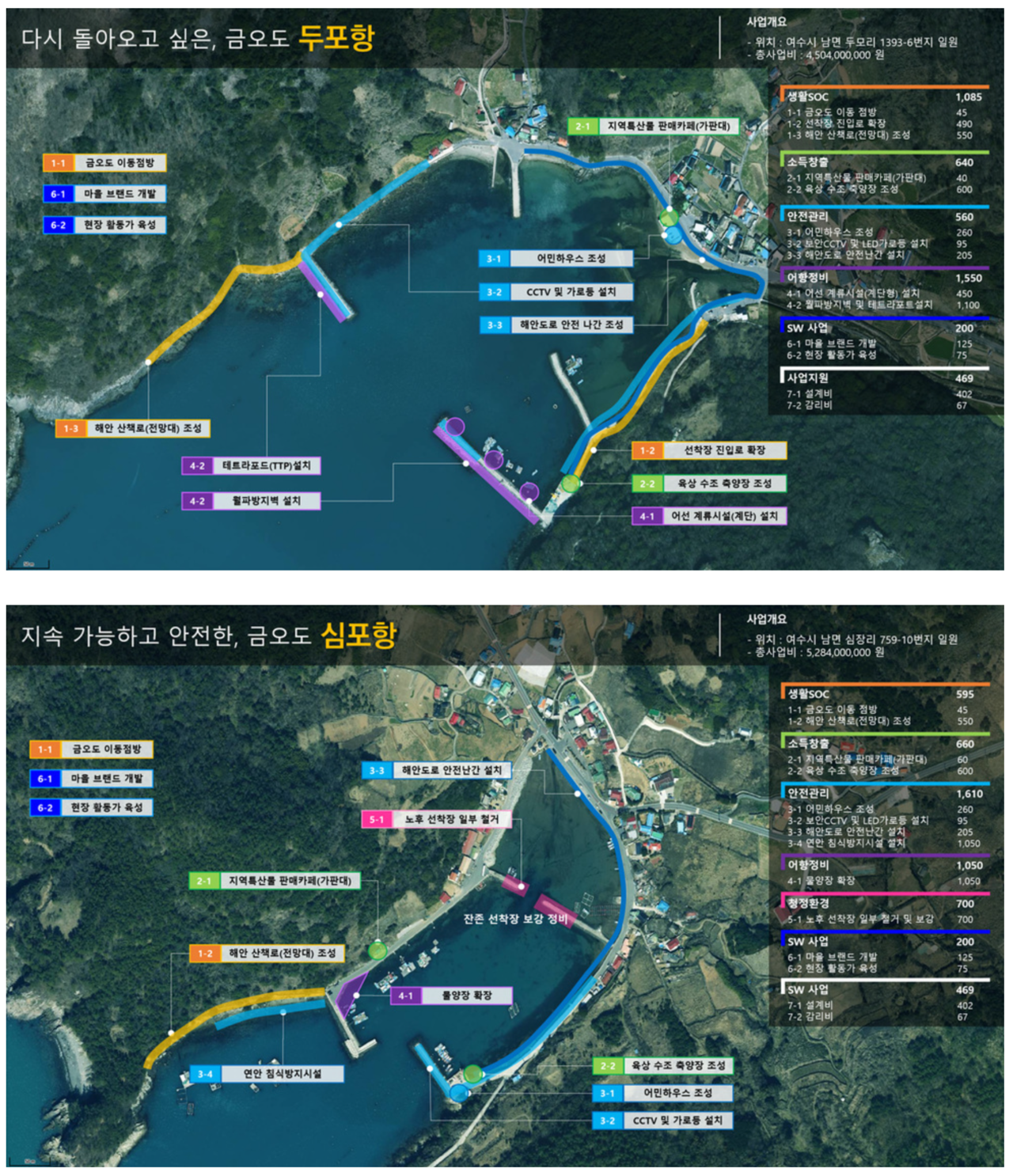 또한 기후변화로 인해 연안 침식이 가속화되고 있는 상황에서 두 항 모두 지형적으로 파랑 피해에 취약하다는 점을 고려해 침식 방지시설과 월파 방지벽을 설치해 주민 안전과 시설물 보호를 한층 강화할 계획이다.
