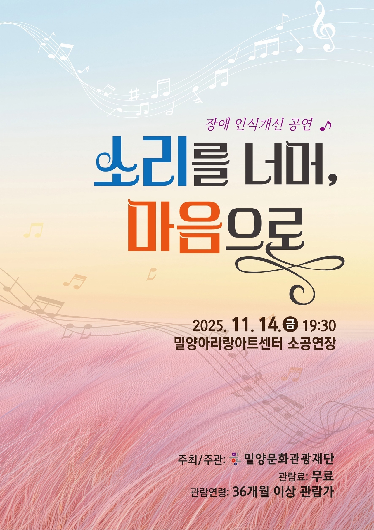 첫 번째 공연은 오는 14일 오후 7시 30분 소공연장에서 열리는 장애 인식개선 공연 ‘소리를 너머, 마음으로’이다. 이 공연은 세계 유일의 시각장애인 전문예술단체인 ‘한빛예술단’과 2024 밀양 꿈꾸는 예술터 교육사업의 일환으로 기획된 발달장애인 합창단 ‘이루다 합창단’, 그리고 2016년 밀양 4개 학교의 발달장애 학생들로 창단된 오카리나 연주팀 ‘오리코러스’가 함께 무대에 올라 따뜻한 감동을 선사할 예정이다.