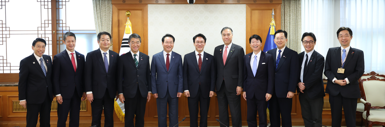 한일시장지사회의 참석차 한국을 방문 중인 일본 9개 현 지사들이 12일 오전 서울 세종로 정부 청사를 방문해 김민석 총리를 예방했다.
