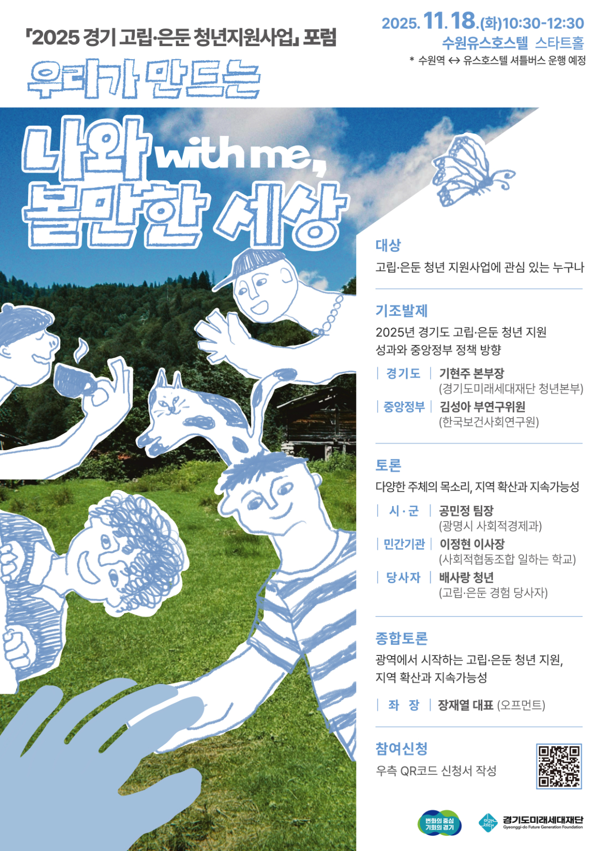 경기도와 경기도미래세대재단은 지난 18일 수원유스호스텔에서 ‘2025년 경기 고립·은둔 청년 지원사업 포럼’을 열어 올해 사업 성과를 공유하고 향후 정책 방향과 과제를 논의했다.