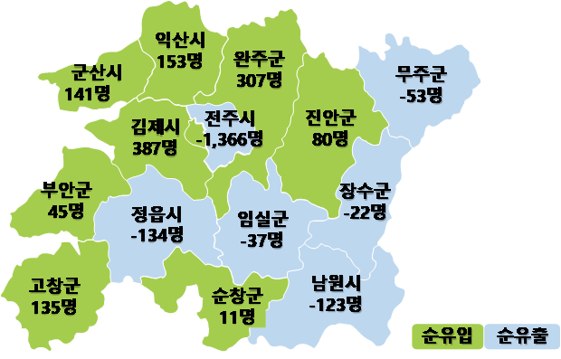통계에 따르면 김제시는 3분기 387명 순유입을 기록해 도내에서 가장 큰 증가폭을 보였다. 또한 1분기 814명, 2분기 440명, 3분기 387명 등 올해 분기별 순유입 1위를 달성하며, 3분기까지 누적 1,641명이 김제로 전입한 것으로 나타났다.