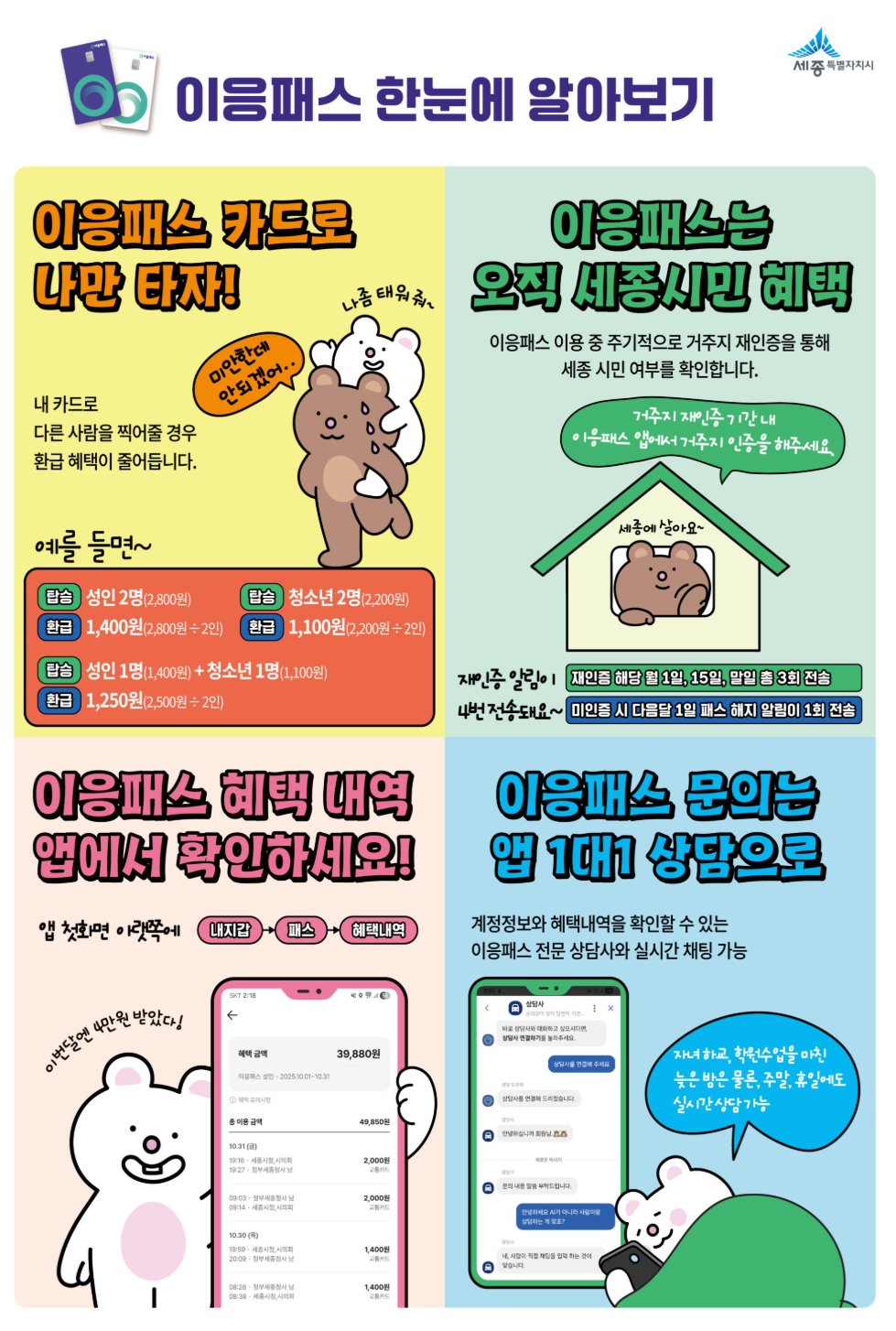 시는 이러한 정산방식 변경에 따라 ‘1인 1카드 이용’ 원칙을 적극 홍보해 시민들이 환급 혜택을 최대한 받을 수 있도록 안내할 계획이다.