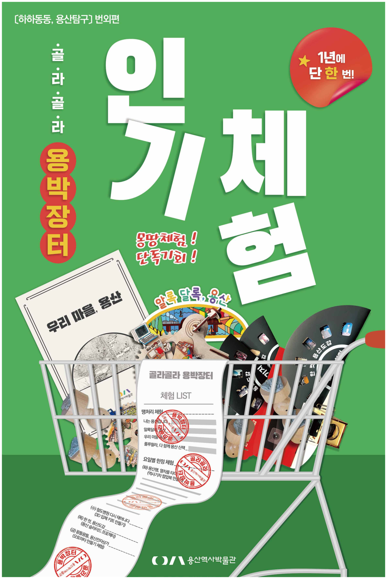 서울 용산구가 겨울방학을 맞아 오는 13~30일(토~월 제외) 오후 2~5시 용산역사박물관[국가등록문화유산(구 용산철도 본관), 한강대로14길 35-29] 다목적실에서 체험 꾸러미 자율 학습 프로그램 ‘골라골라, 용박장터’를 운영한다.