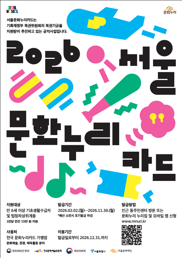 또한 서울문화재단은 생활권 기반 문화누리카드 이용 프로그램을 더 확대하고, 고령자와 이동약자의 카드 이용 접근성을 강화해 사업 효과성을 높이고 시민 체감도를 제고할 계획이다.