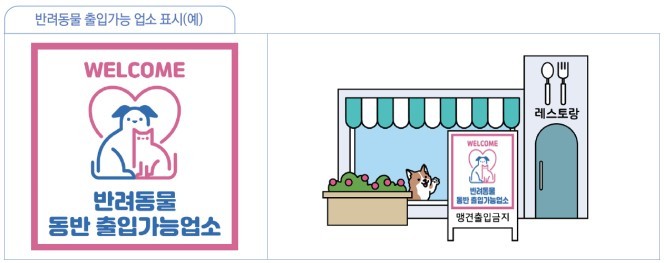 제도 시행에 따라 반려동물 동반출입 음식점을 운영하려면, 기존 애견카페 외에도 반려동물(개,고양이로 한함) 동반출입 음식점으로 등록해야 한다. 사업자는 시설기준을 갖추고, 관할 군·구 위생부서에 신청하여 사전 컨설팅과 현장 점검을 거쳐야 한다.
