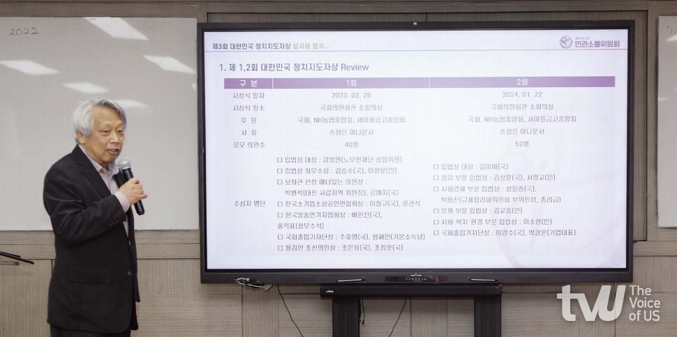 이번 심사에서는 조직위원장을 맡은 정세균 전 국무총리가 끝까지 심사를 챙기며 기준과 방향을 점검했다. 민간소통위원회 주최 아래 진행된 이번 심사는 이영애 위원장을 비롯한 심사위원들이 국회의원실을 직접 확인하는 절차를 거쳐 자료의 정확성과 실효성을 검증했고, ChatGPT 등 다양한 분석 도구를 활용해 법안의 파급효과와 정책적 영향까지 다시 점검했다.