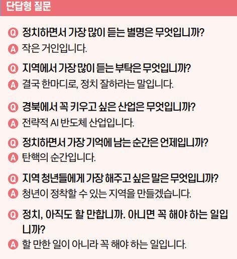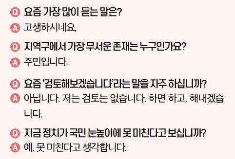 이번 인터뷰는 말 잘하는 정치인을 보여주는 자리가 아니었다. 일을 끝까지 가져가는 사람인지를 확인하는 시간이었다. 길게 설명하지 않는다. 방향을 잡으면 바로 밀고 간다. 그래서 더 설득력이 있다. 읽다 보면