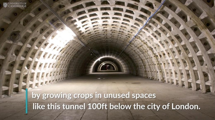 런던은 지하 33m 아래에 있는 남부의 제2차 세계대전 공습 대피소를 세계 최초로 지하 농장으로 만들었다. 완두콩, 바질, 고수, 파슬리, 로켓잎, 무, 겨자 식물 등 신선한 녹색 잎이 쌓여 있는 선반이 LED 조명 아래에서 번성하고 있다.