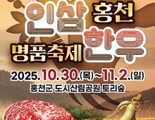 강원특별자치도 홍천군은 오는 10월 30일(목)부터 11월 2일(일)까지 4일간, 홍천 도시산림공원 토리숲 일원에서 ‘제23회 홍천 인삼·한우 명품축제’와 ‘제10회 홍천사과축제’를 동시에 개최한다. 올해는 두 축제가 한 장소에서 함께 열리며, 홍천의 명품 특산물과 다채로운 공연·체험·이벤트가 어우러진 풍성한 가을 축제의 장이 펼쳐질 예정이다. 홍천의 명품 특산물인 6년근 인삼, 늘푸름한우, 홍천사과를 중심으로 다양한 판매행사와 이벤트가 준비되어 있어 가을 여행지로서 홍천의 매력을 한껏 느낄 수 있을 전망이다. 축제 기간 동안 ‘MBC 정오의 희망곡 공개방송’, ‘한민족 명품콘서트’, ‘홍천강 가요제’, ‘한마음콘서트’ 등 볼거리 가득한 무대공연이 이어진다. 또한 만원의행복(잡뼈담기), 사과 길게 깎기, 인삼경매 등 흥미로운 참여형 무대 이벤트가 진행되며, 특히 사과 5kg 이상 구매 고객과 군복 착용 병사를 대상으로 하는 ‘덤덤이벤트’에서는 ‘사과 덤’, ‘굿즈인형’ 등 푸짐한 경품이 준비돼 방문객의 큰 호응이 기대된다. 또한, 한우 셀프식당과 인삼 판매장, 농·특산물 판매장, 향토음식점, 인삼튀김·인삼막걸리·한우꼬치, 사과핫도그, 사과타르트 등 다채로운