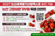 지금 논산시 고향사랑기부제에 참여하면 설향 딸기 1+1 혜택을 받을 수 있다. 논산시는 2027년 논산세계딸기산업엑스포 승인을 기념해 고향사랑기부제 특별 행사 ‘Very Berry Good’을 민간 플랫폼 웰로(Wello) 단독으로 진행한다고 밝혔다. 이번 행사는 지역 대표 농특산물인 딸기를 주제로, 논산시를 선택한 기부자에게 풍성한 혜택을 제공하고, 지역 농가의 판로를 확대하는 동시에 2027 논산세계딸기산업엑스포의 국제행사 공식 승인을 기념하기 위해 마련됐다. 고향사랑기부제 민간 플랫폼 웰로(Wello)에서 논산 설향 딸기 800g 답례품을 선택할 경우, 선착순 1,000세트에 한해 1.6kg로 1+1 혜택이 제공된다. 사전 예약은 11월 14일(금)부터 시작되며, 주문된 딸기는 12월 초부터 신선하게 순차적으로 발송될 예정이다. 또한, 기부자 전원을 대상으로 한 ‘777 경품 추첨 이벤트’도 함께 진행한다. 11월 14일부터 오는 12월 15일까지 웰로를 통해 고향사랑기부제에 참여한 논산시 기부자 중 777명을 추첨해 △킹스베리 1팩(300명) △비타베리 1팩(300명) △딸기찹쌀떡 1팩(100명) △딸기잼 1병(77명) 등 논산을 대표하는 다양한 딸기