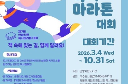 안양시도서관은 안양시민의 독서 습관 형성 및 책 읽는 문화를 조성하고자 오는 10월 31일까지 제7회 '안양시민 독서마라톤 대회’를 운영한다고 밝혔다.올해로 7회를 맞은 안양시민 독서마라톤 대회는 독서와 마라…