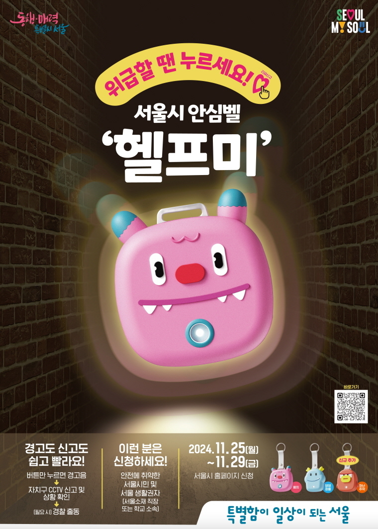 이와 관련해서 서울시는 이번 달 4일(화) 오전 10시부터 10일(월) 오후 6시까지 서울시 누리집(www.seoul.go.kr/sos)에서 ‘내 안전 지키는 안심헬프미’ 신청을 받는다.