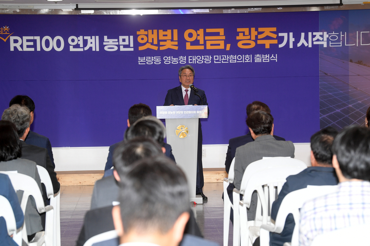 강기정 광주시장은 “이번 사업은 농민에게는 햇빛연금을, 기업에게는 RE100 실현을 가능케 하는 일거양득 사업이다”며 “농민 주도의 민관협의회가 사회적 합의를 이끄는 성공 모델이 되어 농업과 에너지가 상생하는 전국적 표준을 만들겠다”고 말했다.