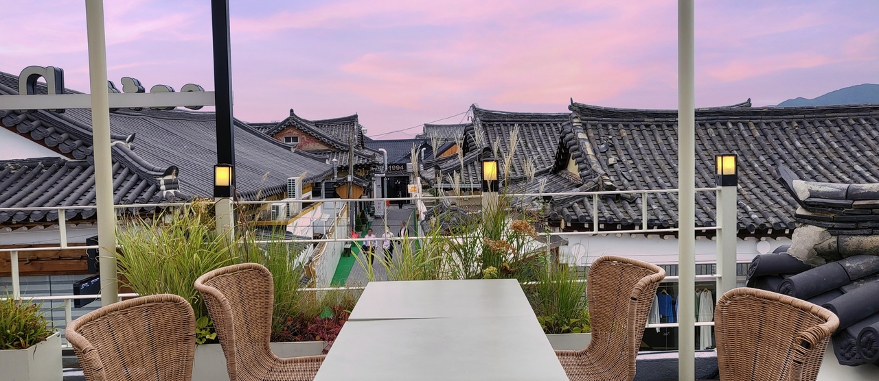 늦은 오후 황리단길을 거닐다가 루프탑이 있는 카페를 만난다면, 그곳에서 황남동 한옥의 스카이라인을 붉게 수놓는 해질녘을 만끽해보자. 높은 건물은 많지 않은 대신, 낮은 건물에서도 옥상에 오르면 황리단길의 골목골목을 담을 수 있다.