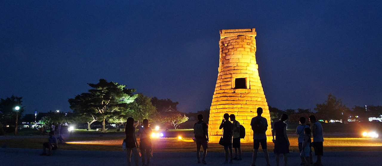 신라의 주요 고분을 둘러보고 대릉원 정문으로 나가면 가까운 곳에 밤하늘을 수놓는 달 아래, 별자리 아래, 그만큼 빛나는 첨성대가 있다. 선덕여왕 때 축조된 동양에서 가장 오래된 첨성대의 365개 돌은 신라 시대 천문학의 상징으로, 달빛과 함께 조명이 더해져 그 자체가 거대한 예술 작품이 된다.