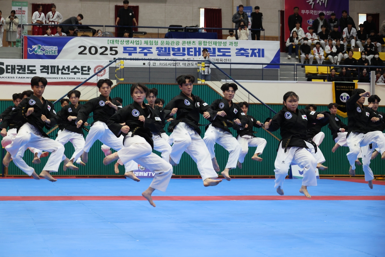 제21회 무주 웰빙태권도 축제가 지난 15일과 16일, 무주국민체육센터에서 개최됐다. 전북일보가 주최하고 우석대학교 산학협력단·휴먼테크융합대학 태권도학과가 주관하는 무주 웰빙태권도 축제는 전북특별자치도와 무주군, 전북특별자치도 교육청, 전북특별자치도 체육회, 무주군태권도협회가 후원한 가운데 전국 각지에서 1천5백여 명의 선수와 관계자 등 총 2천5백여 명이 참가해 성황을 이뤘다. 15일 열린 개막식에는 황인홍 무주군수와 오광석 무주군의회 의장, 서창훈 전북일보 회장, 박노준 우석대학교 총장, 김중헌 태권도진흥재단 이사장 등이 참석했다.