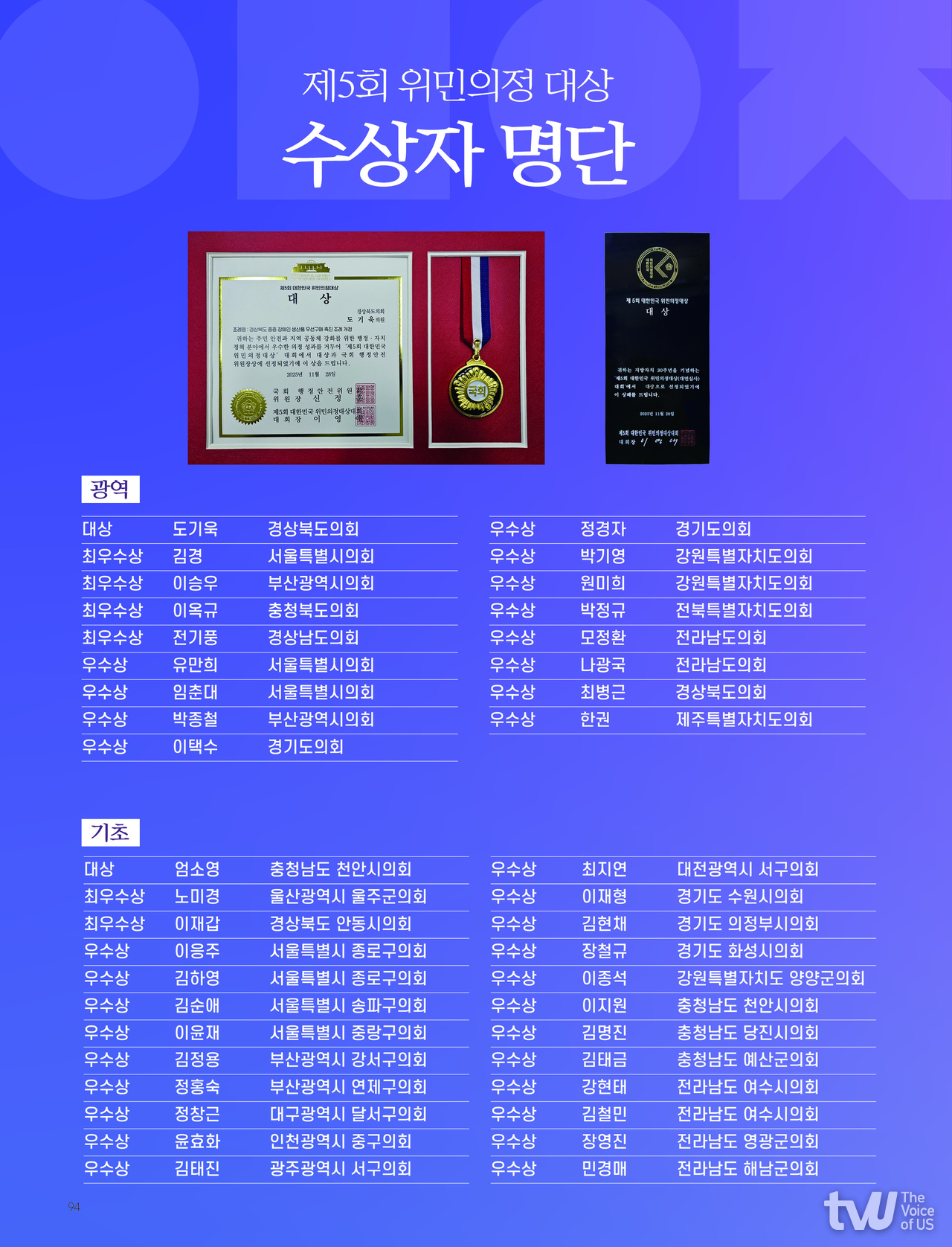 올해로 다섯 번째를 맞은 위민의정대상이 11월 28일 국회 도서관 소강당에서 성황리에 막을 내렸다.민선자치 30년을 맞이한 시점에서 진행된 이번 대회는 전국 지방의원의 정책 역량과 주민 중심 의정을 재조명