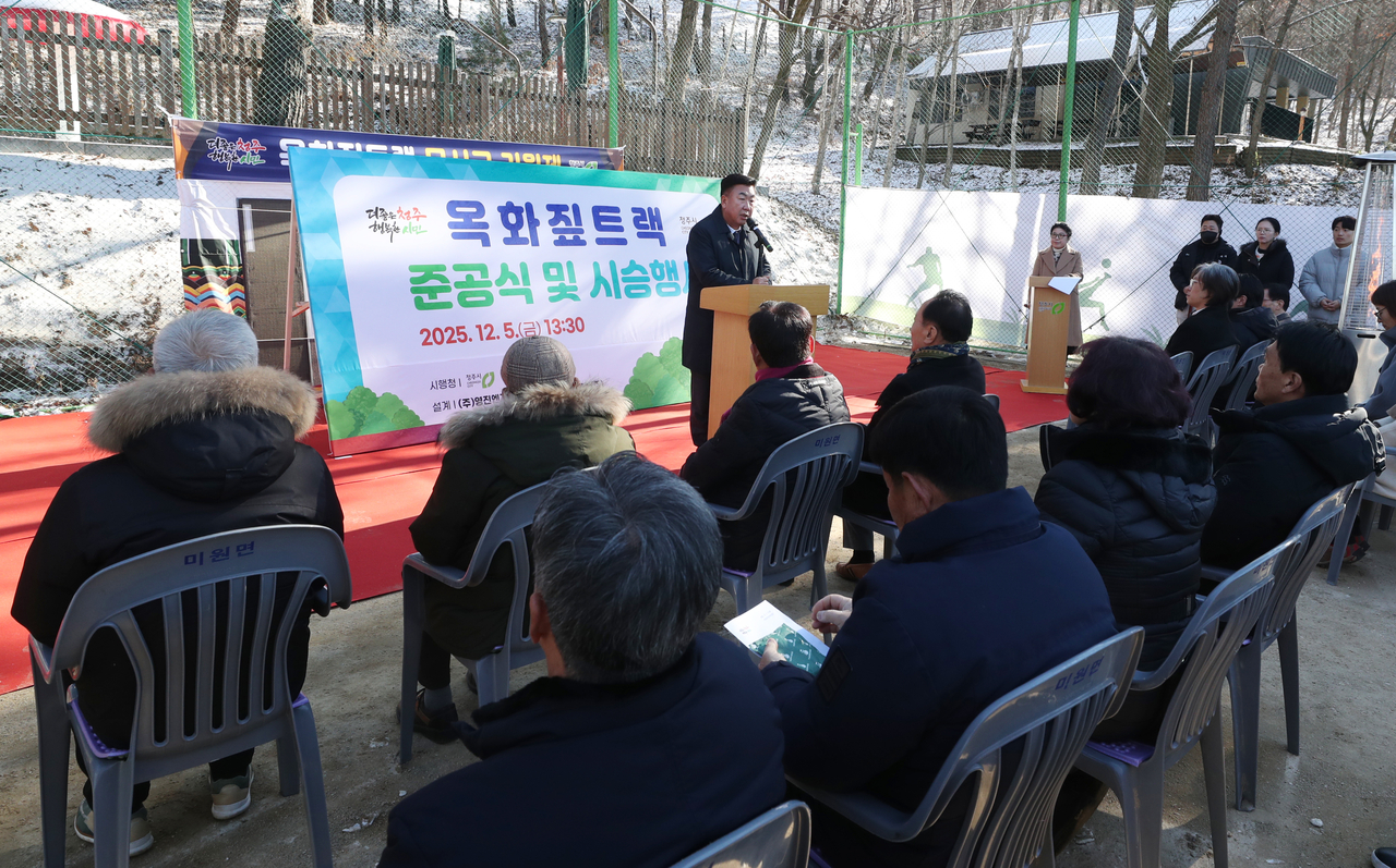 옥화 짚라인 앞에서 진행된 행사에는 이범석 청주시장 등 시 관계자와 청주시의회 의장 및 의원, 미원면 주민 등 100여명이 참석해 청주지역 최초 산림레포츠 시설의 준공을 축하했다.