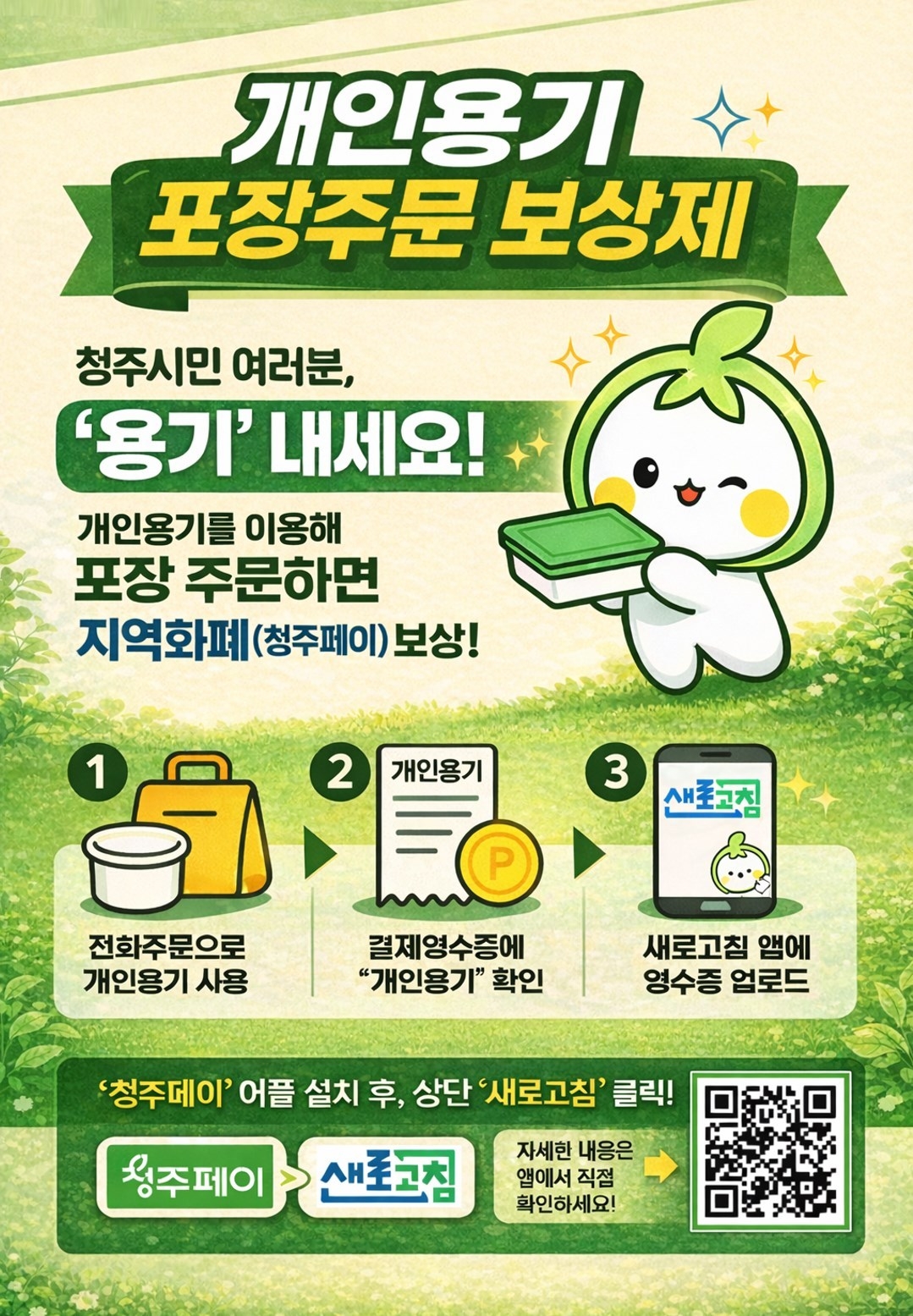 이후 ‘개인용기’라는 문구가 인쇄된 결제 영수증을 청주시 공공앱 ‘새로고침’에 업로드하면 보상이 즉시