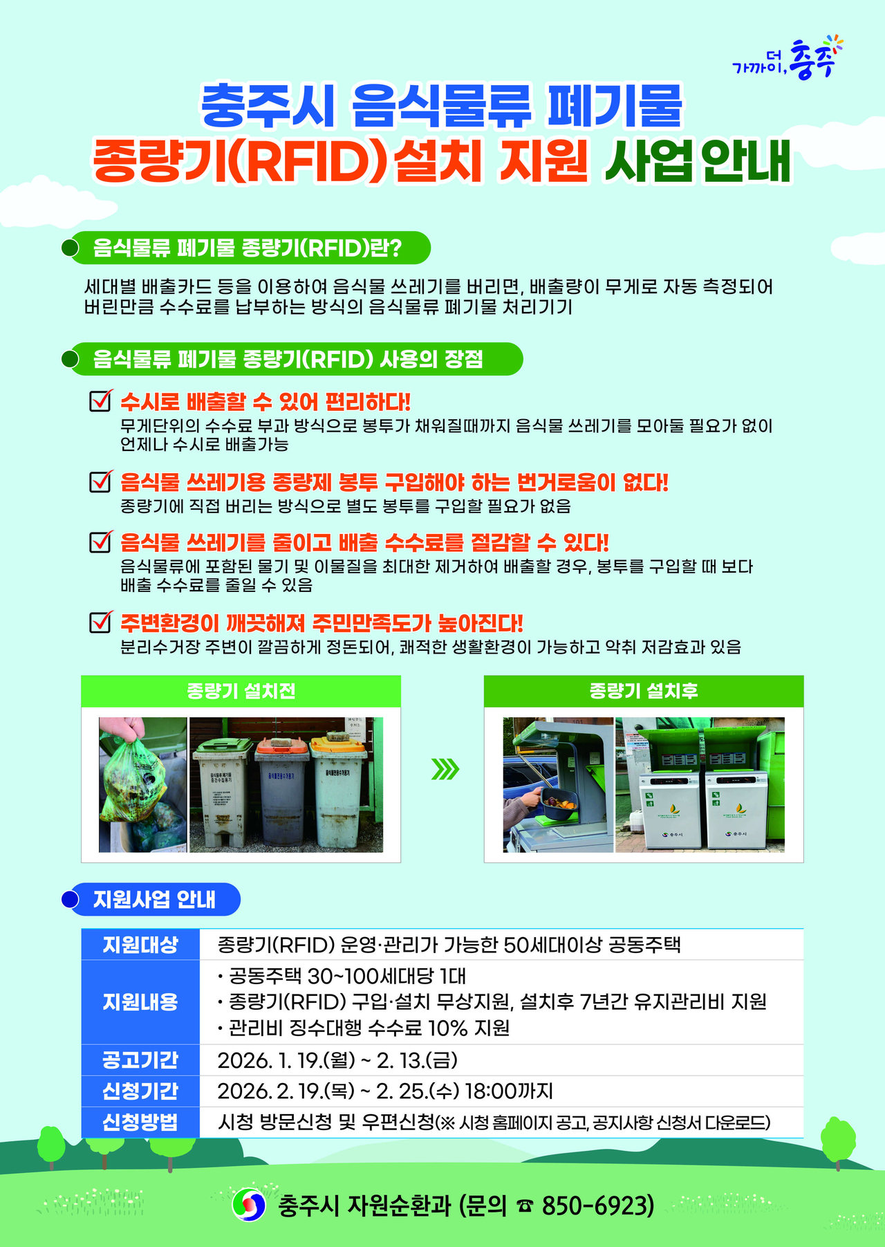 자세한 사항은 충주시청 자원순환과(☏043-850-6923)으로 문의하면 된다.