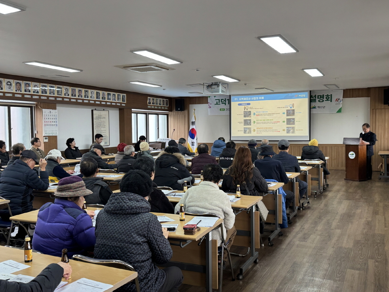 예산군은 2026년 ‘고덕1지구’ 지적재조사사업을 원활히 추진하기 위해 지난 4일 고덕면행정복지센터 회의실에서 토지소유자와 이해관계인을 대상으로 주민설명회를 개최했다.