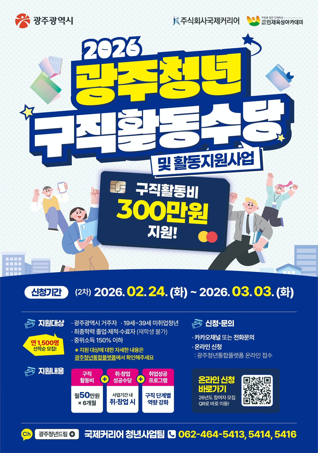 광주광역시는 미취업 청년의 안정적인 취업 준비를 지원하기 위해 ‘2026년 광주 청년 구직활동수당 지원’ 2차 참여자 1147명을 오는 3월3일까지 모집한다.