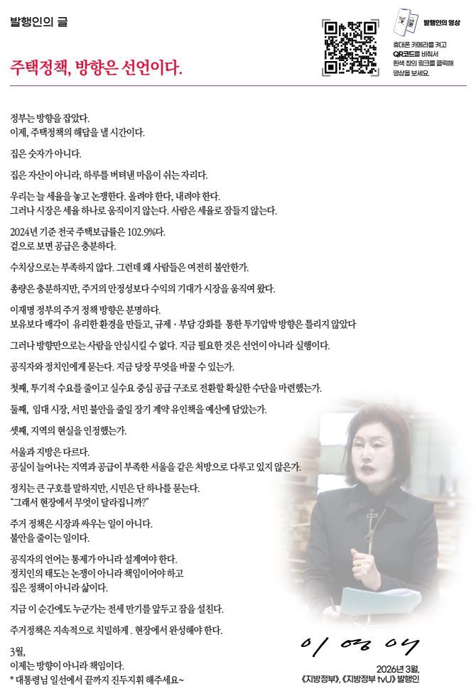 그러나 방향만으로는 사람을 안심시킬 수 없다. 지금 필요한 것은 선언이 아니라 실행이다.