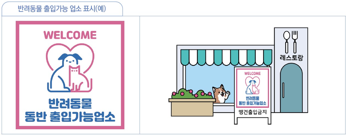 이에 일반음식점, 휴게음식점, 제과점을 운영하고 있거나 운영하려는 영업자들은 법적 기준을 준수하는 경우 반려동물 동반 출입 음식점 운영이 가능하다. 업소 출입구에는 표지판 등으로 반려동물 출입가능 업소 여부를 안내해야 한다.