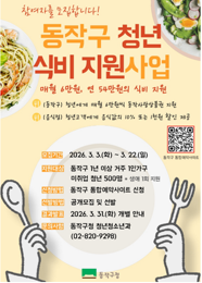 구는 올해도 중앙대·숭실대·총신대 학생과 취업준비생 등 1인 가구 청년 500명을 선발해 4월부터 12월까지 월 6만 원의 식비를 지원할 계획이다.