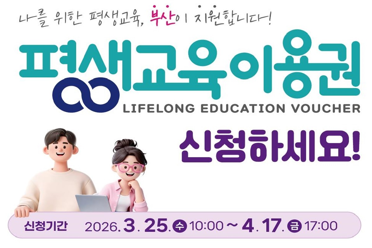 부산시는 오는 3월 25일부터 소외계층 성인(저소득층 및 장애인 등)을 대상으로 '2026년 부산광역시 평생교육이용권' 신청․접수를 시작한다고 밝혔다.