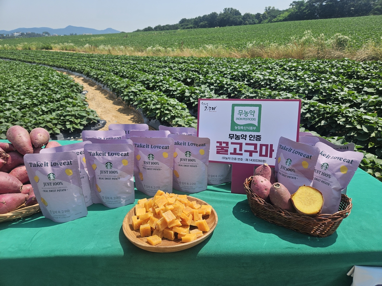스타벅스 협업은 방향을 보여준다. 고창 고구마 100% 제품 출시와 함께 커피박 퇴비 1만 포(20kg/포)를 지역 농가에 무상 기부했다. 단순 납품을 넘어 ESG와 농업을 잇는 자원 순환 구조다.
