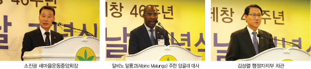 알비노 말룽고(Albino Malungo) 주한 앙골라 대사는 축사에서 “새마을운동이 대한민국과 개발도상국 간 협