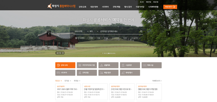 한번에 799개 프로그램을 볼 수 있는 통합예약시스템이 등장했다. 화성시가 구축, 운영한 통합예약시스템이다.