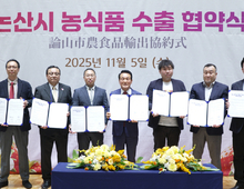 논산시가 일본 오사카 현지 대형 유통업체들과 협력해 논산 농식품의 일본 시장 진출 확대에 나섰다. 시는 5일 일본 오사카 호텔 로얄클래식 연회장에서 현지 유통 전문기업 6개 사와 수출 협력 강화를 위한 업무협약을 체결했다. 이번 협약을 통해 양측은 ▲우수 신선 농산물 및 가공식품 교류·수출 협력 ▲일본 시장 내 안정적 판로 구축 및 지속적 교류 강화 등 협력 체계 마련에 뜻을 모았다. 협약서에는 백성현 논산시장과 일본 현지 유통업체 대표들이 공동 서명해 논산 농식품 수출 확대를 위한 상호 협력 의지를 확인했다. 협약식에는 ㈜모모디즈, ㈜나나츠보시, ㈜플랫푸드, ㈜세이코부츠류, JN글로벌, ㈜이탈리안푸드 등 오사카 지역 식자재 및 유통 전문 기업이 참여했다. 협약 규모는 약 70만 달러(약 10억 원)이며, 주요 수출 품목은 논산 대표 특산품인 딸기, 냉동딸기, 젓갈, 쌀, 참기름, 고추장 등이다. 논산시는 이번 협약을 통해 일본 현지 유통망과의 협력을 강화함으로써 지역 농가의 수출 활성화와 논산 농식품 브랜드 인지도 제고에 새로운 전기를 마련했다. 특히 오사카는 일본 내 한국 농식품 소비가 활발한 도시로, 논산 농식품의 시장 진입과 소비자 접근성을 높이는 최