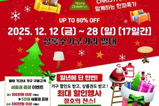 안산시는 지역 상권 활성화와 시민들의 연말 즐길 거리 제공을 위해 ‘제11회 안산 상록수 가구거리 축제’를 오는 12일부터 28일까지 17일간 상록수 가구거리 일대(용신로 435)에서 개최한다고 8일 밝혔다. 올해로 11회째를 맞이한 이번 축제에는 상록수가구협회 소속 총 41개 점포가 참여해 소파, 침대, 인테리어 소품 등 다양한 제품을 최대 80% 할인된 가격으로 판매할 예정이다. 행사 기간 중 구매 고객을 대상으로 온누리상품권 증정 등 사은행사도 함께 진행된다. 특히, 축제의 하이라이트인 시민 노래자랑대회는 21일(토) 오후 1시 30분부터 보노마루 주차장 특설무대에서 열린다. 이 자리에는 시민들에게 친숙한 개그맨 손헌수, 미스터트롯 출신 가수 신성, 미스트롯 출신 가수 한담희 외에도 오혜빈, 송별이 가수가 출연해 흥겨운 무대를 선보이며 축제 분위기를 한층 끌어올릴 예정이다. 이민근 안산시장은 “지역 대표 특화상권인 상록수 가구거리에서 열리는 연말 축제에 많은 시민이 함께해 주시길 바라며, 이번 행사가 지역상권 활성화에 실질적인 도움이 되길 기대한다”고 말했다.